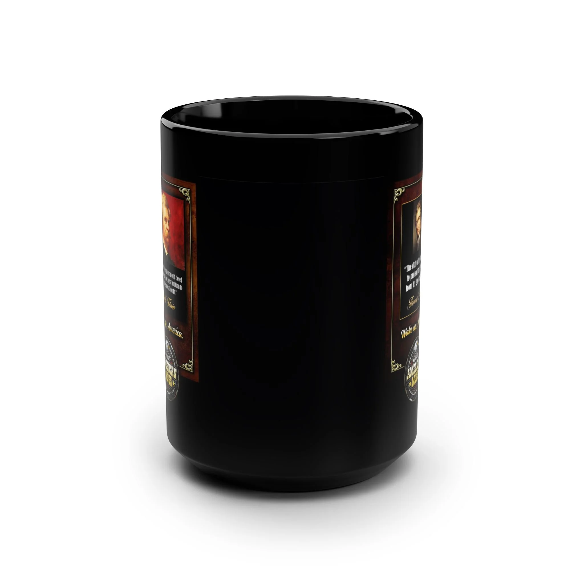 These black mugs are easy to grip and feel sturdy thanks to the C-shaped handle. They are printed on a black ceramic material in picture-perfect quality with a glossy finish.