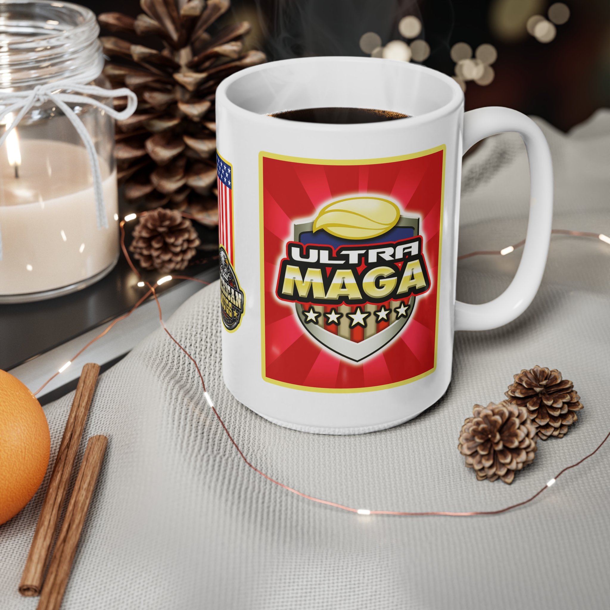 Pick up your Red Ultra MAGA, Great American Mug thanks to the lead and BPA-free white ceramic with a glossy finish, this mug serves a sleek and polished look. They come in 15oz (0.44 l) – perfect for that strong coffee boost in the morning. The C-shaped easy-grip handle helps keep the cup steady even in a rush.